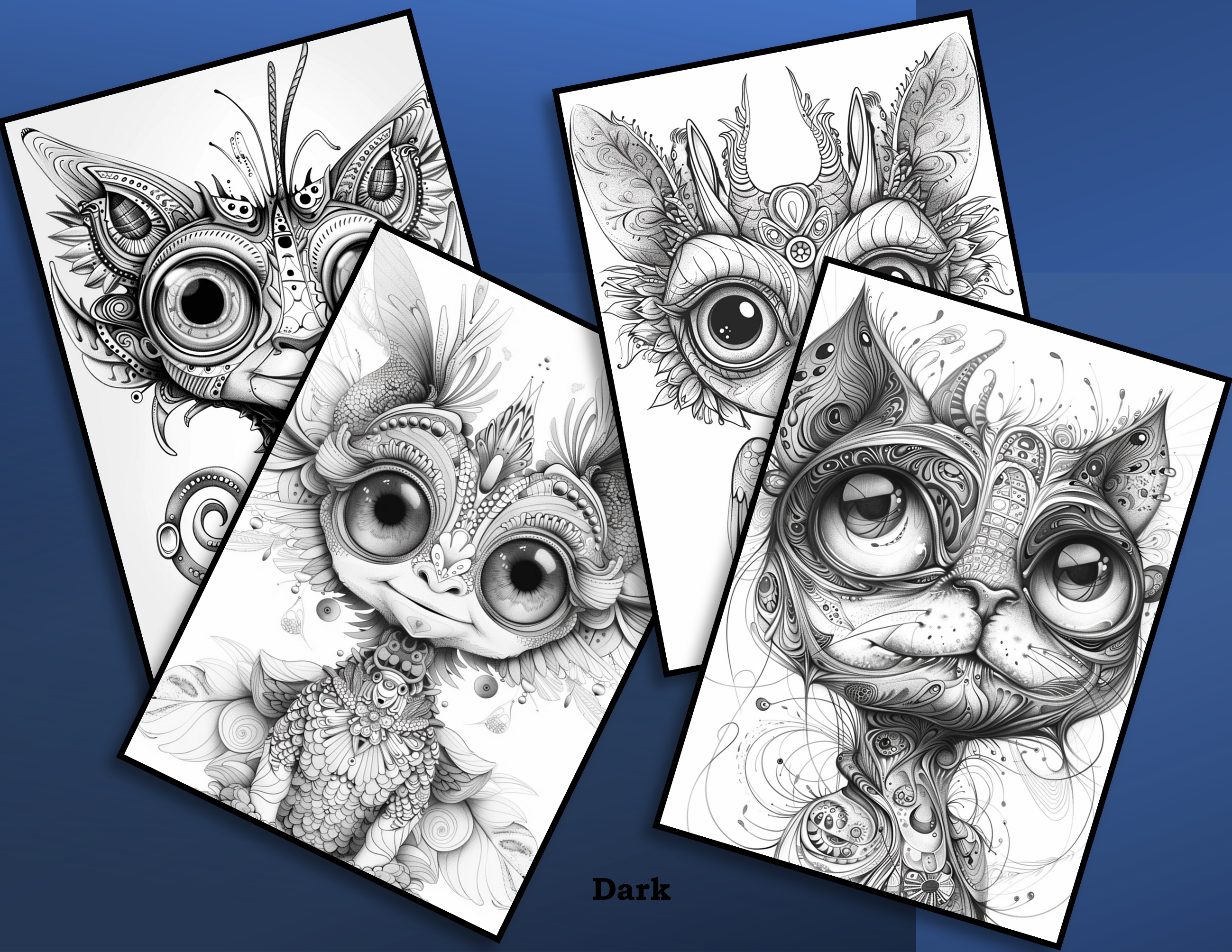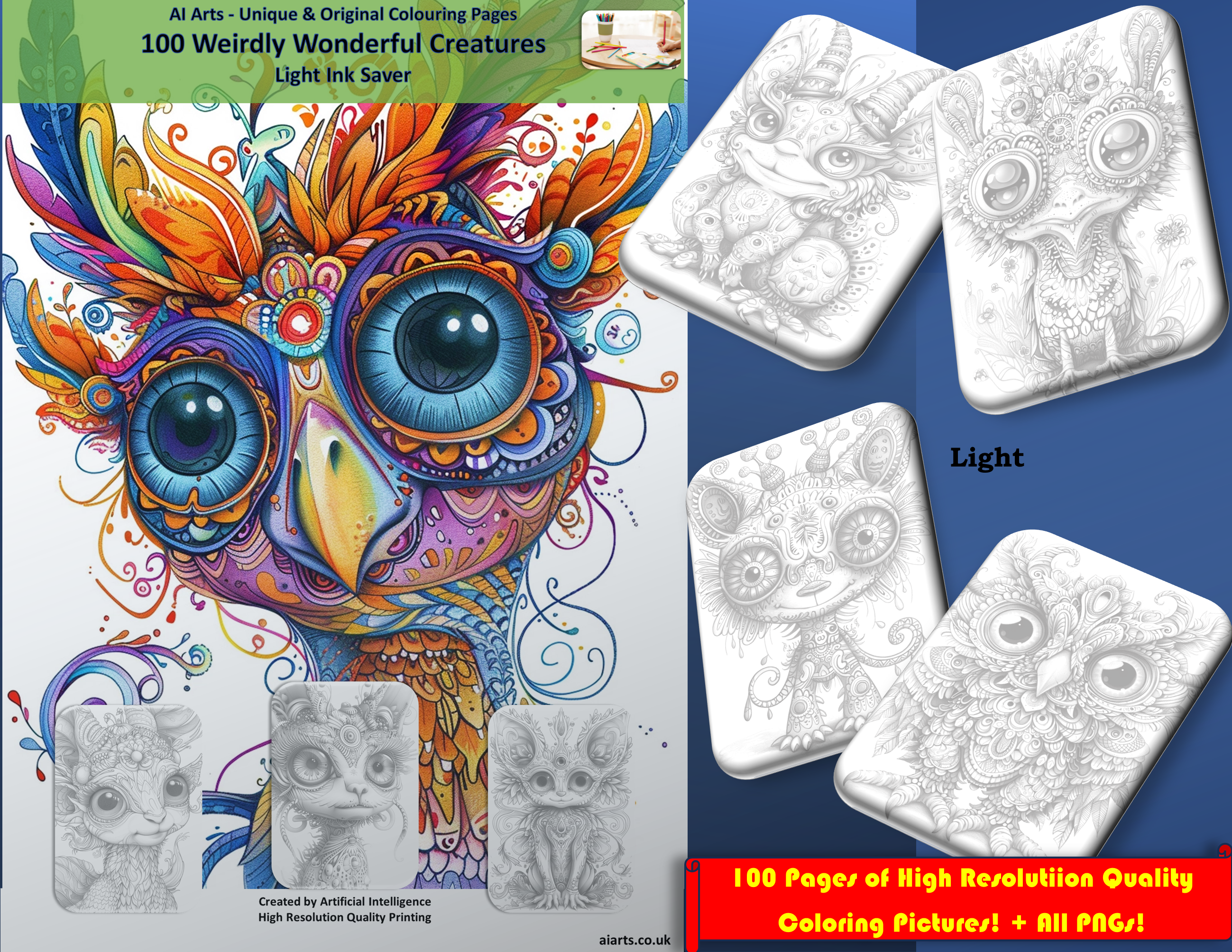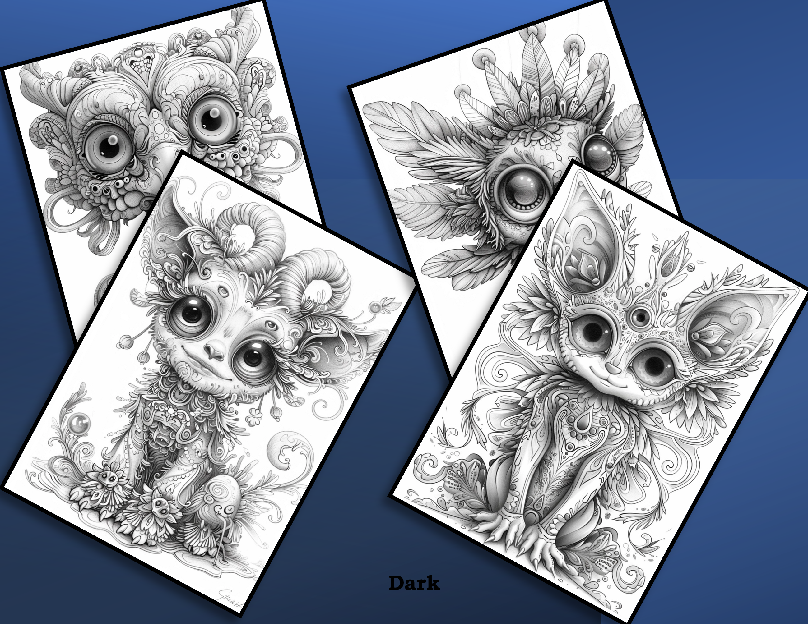 Weirdly Wonderful Creatures, 100 pictures/200 pages (Dark + Light) + 32 Colour Samples + ALL picture png’s; Coloring Page eBook