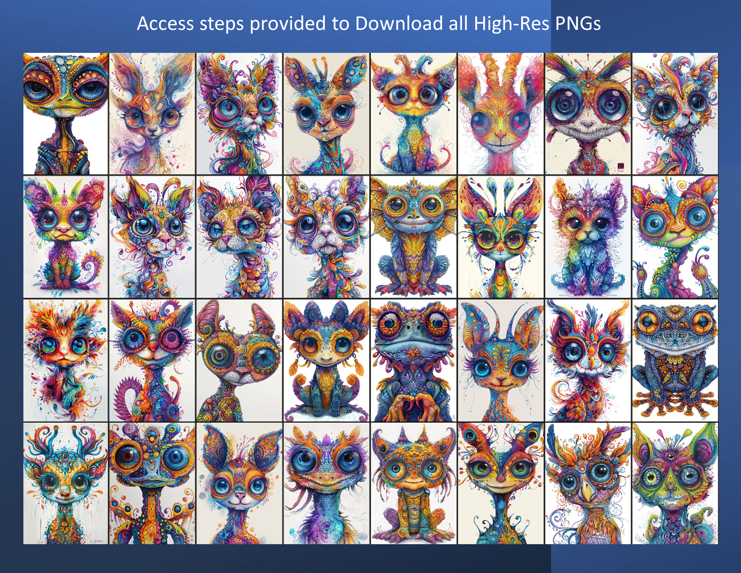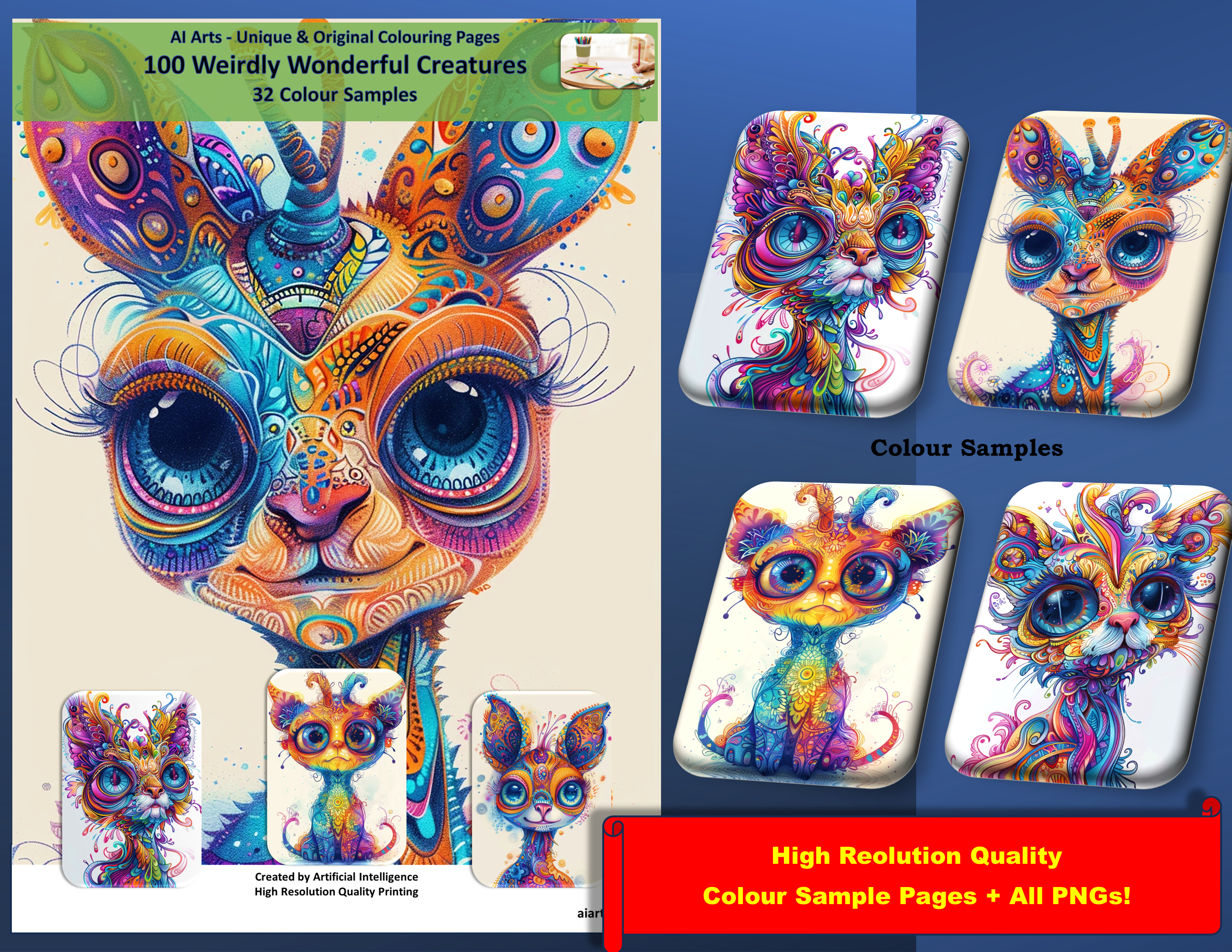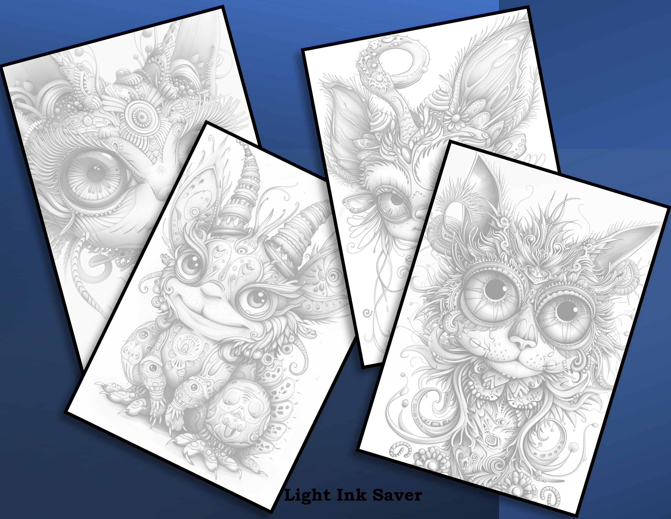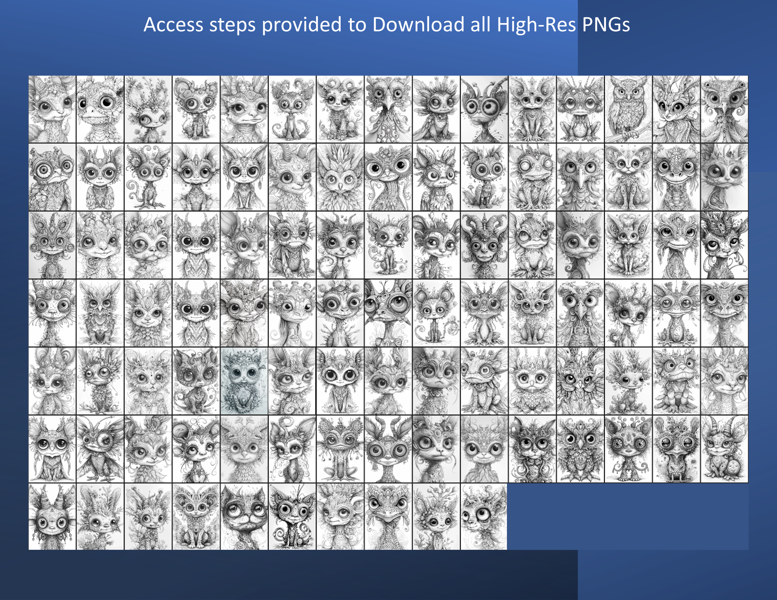 Weirdly Wonderful Creatures, 100 pictures/200 pages (Dark + Light) + 32 Colour Samples + ALL picture png’s; Coloring Page eBook