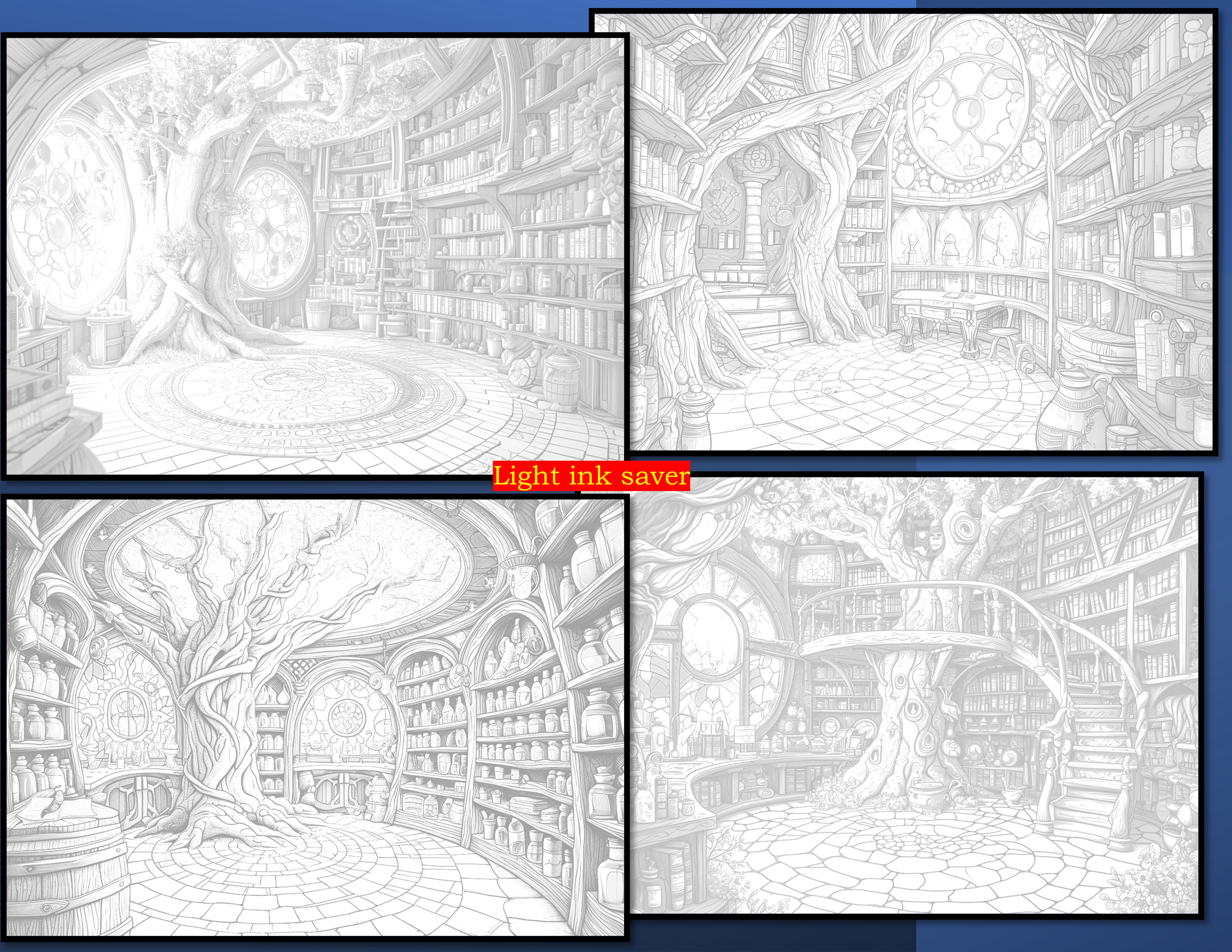 1 x 70 Inside Fantasy Enchanted Magical Tree House in Light Ink Saver print
