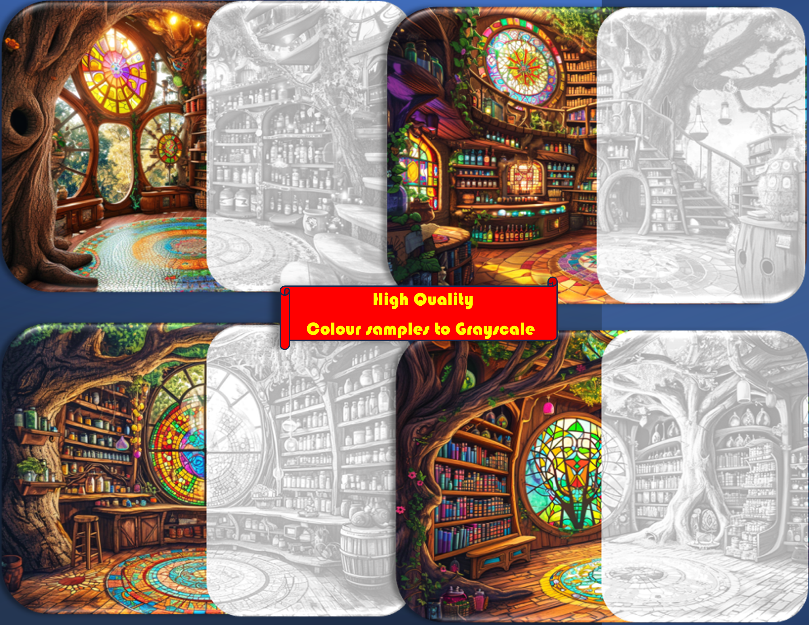 1 x 50 Inside Fantasy Enchanted Magical Tree House Colour Sample to Grayscale